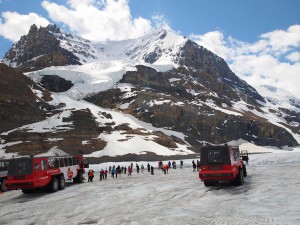 巨大なタイヤの雪上車で氷河散策「コロンビア大氷原」